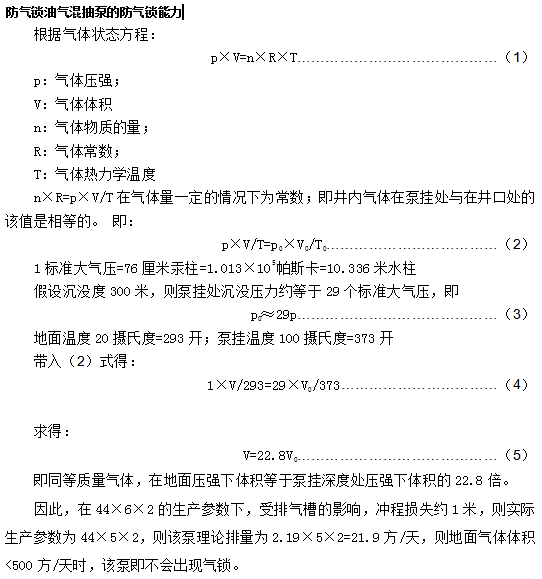 有效解決。油氣混抽泵配套技術(shù),從地 層、井筒入手,從源頭遏制了套 管氣的產(chǎn)生,從根本上有效解決 了套管氣安全環(huán)保問題,意義重 大。 油氣混抽泵配套技術(shù)可以滿 足地面氣體 <500 方 / 天產(chǎn)氣量 的油井正常生產(chǎn),而不產(chǎn)生氣鎖。 對于套壓 >1MPa,且地面 氣體 <500 方 / 天的油井油氣混 抽泵配套技術(shù)可以有效解決其套 管氣問題,并改善其供液情況, 具有較大的應用前景和推廣價值。