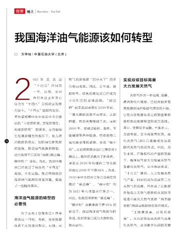 海洋油氣能源的轉型的 因此,在我國承諾的“碳達峰”、 場進口液化天然氣資源“兩條腿